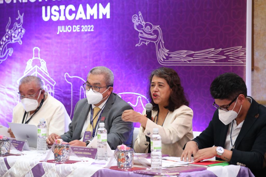 En el evento realizado en la ciudad capital, la titular de la Usicamm, Adela Piña Bernal agradeció la hospitalidad del gobierno de Lorena Cuéllar Cisneros, para reunirse en la entidad, retomando las palabras del secretario de Educación, Homero Meneses Hernández.