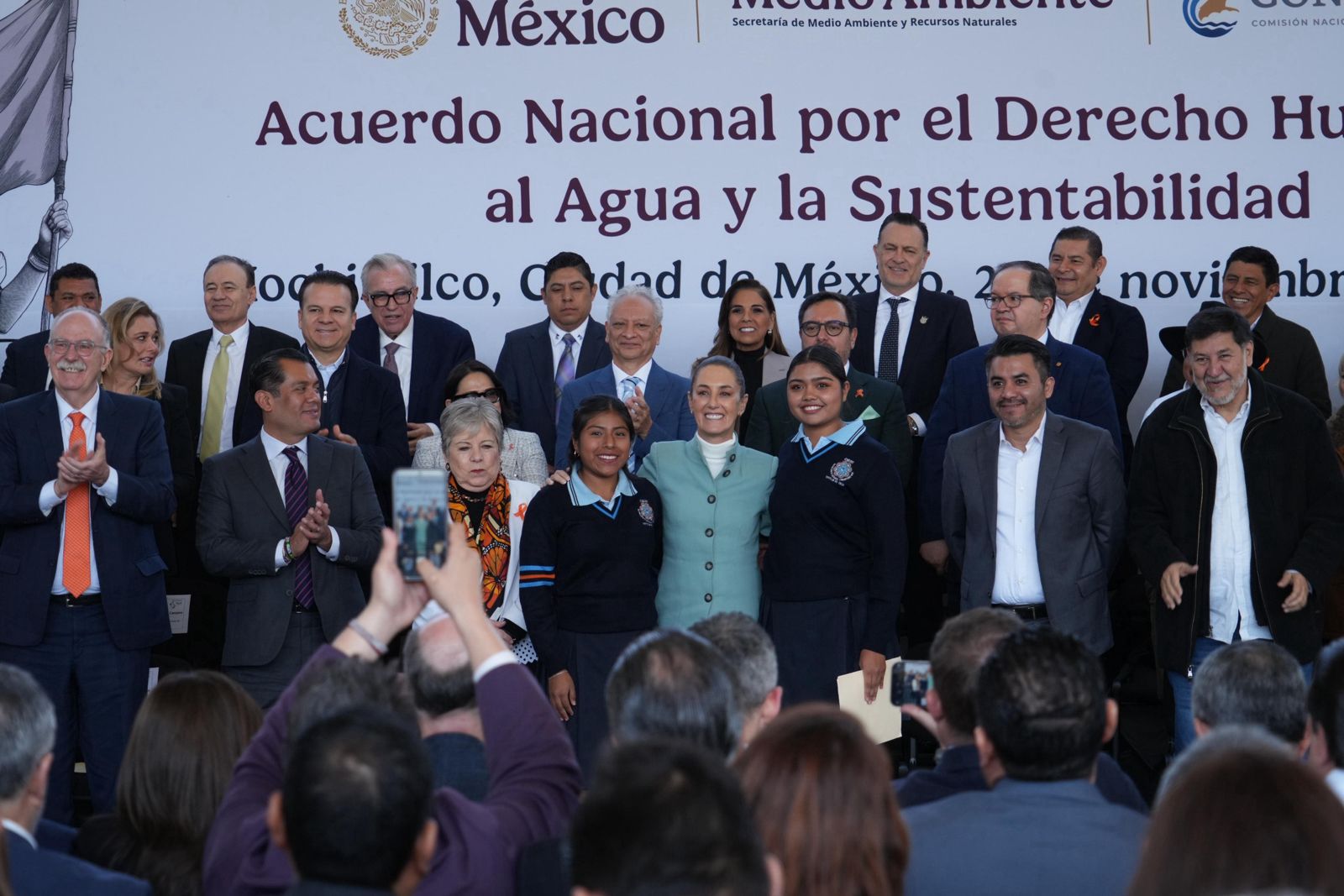 La Presidenta de México, Claudia Sheinbaum Pardo, firmó el Acuerdo Nacional por el Derecho Humano al Agua y la Sustentabilidad, que une a empresarias, empresarios, así como a los 32 gobernadores y gobernadores para garantizar el agua como un bien nacional y un derecho de todas y todos los mexicanos, esto como parte del Plan Nacional Hídrico 2024-2030.