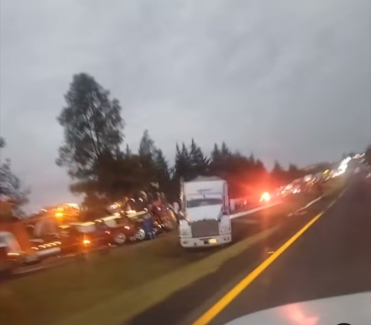 Ahí una pipa cargada de leche volcó, lo que originó que la circulación fuera interrumpida por algunas horas con dirección hacia Huamantla.