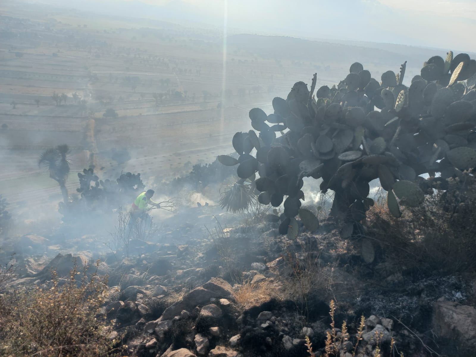 De acuerdo con la información proporcionada por Iván García Vega, Director de Protección Civil Municipal, el fuego consumió alrededor de tres hectáreas de flora.