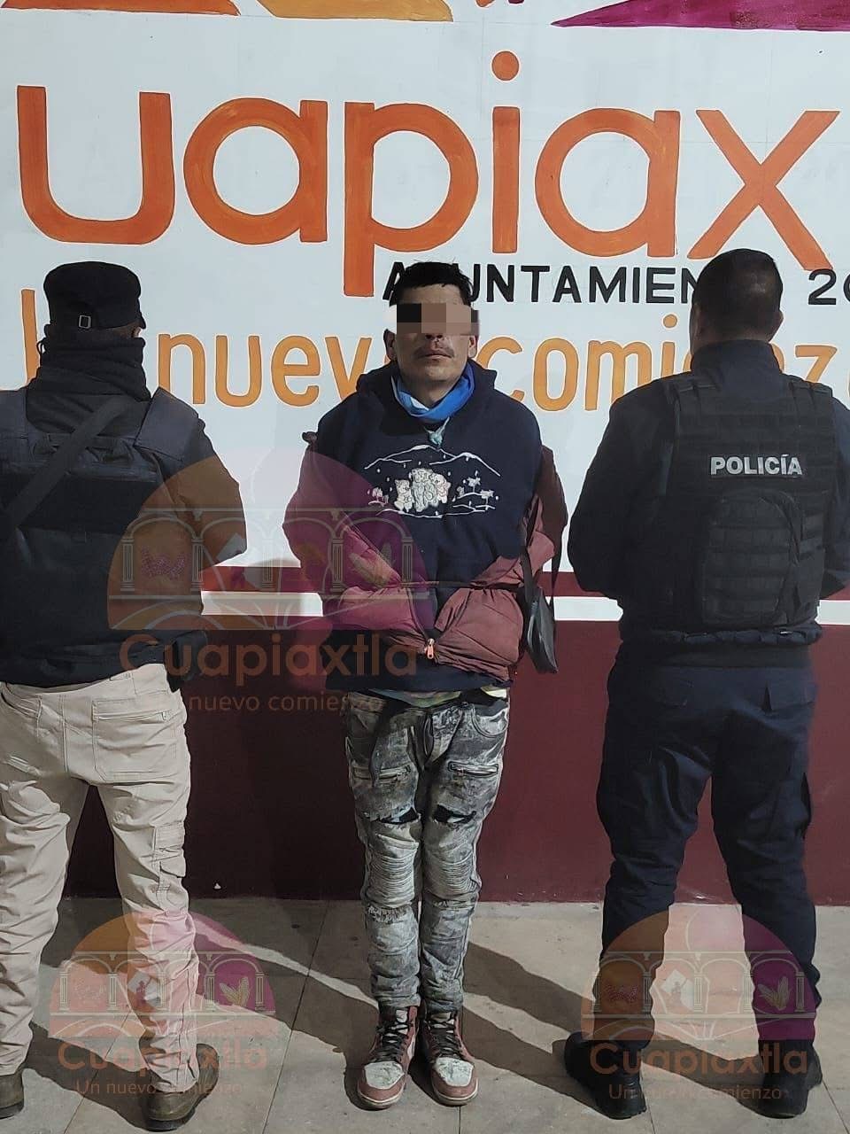 Elementos de la Dirección de Seguridad Pública de Cuapiaxtla, logró la detención de una persona identificado como Cristian N., de 30 años de edad y vecino de Atltzayanca.