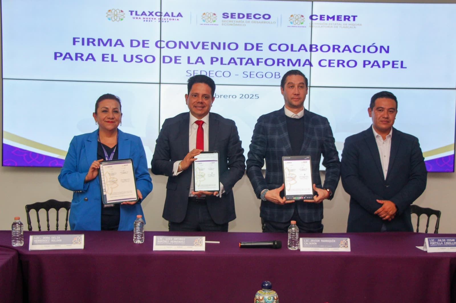 La Secretaría de Desarrollo Económico (Sedeco) y dependencias del Gobierno del Estado, avanzan en el cuidado del medio ambiente, además, dan un paso importante en la digitalización y la eficiencia gubernamental, al firmar el convenio colaboración para utilizar la plataforma digital Cero Papel Tlaxcala.