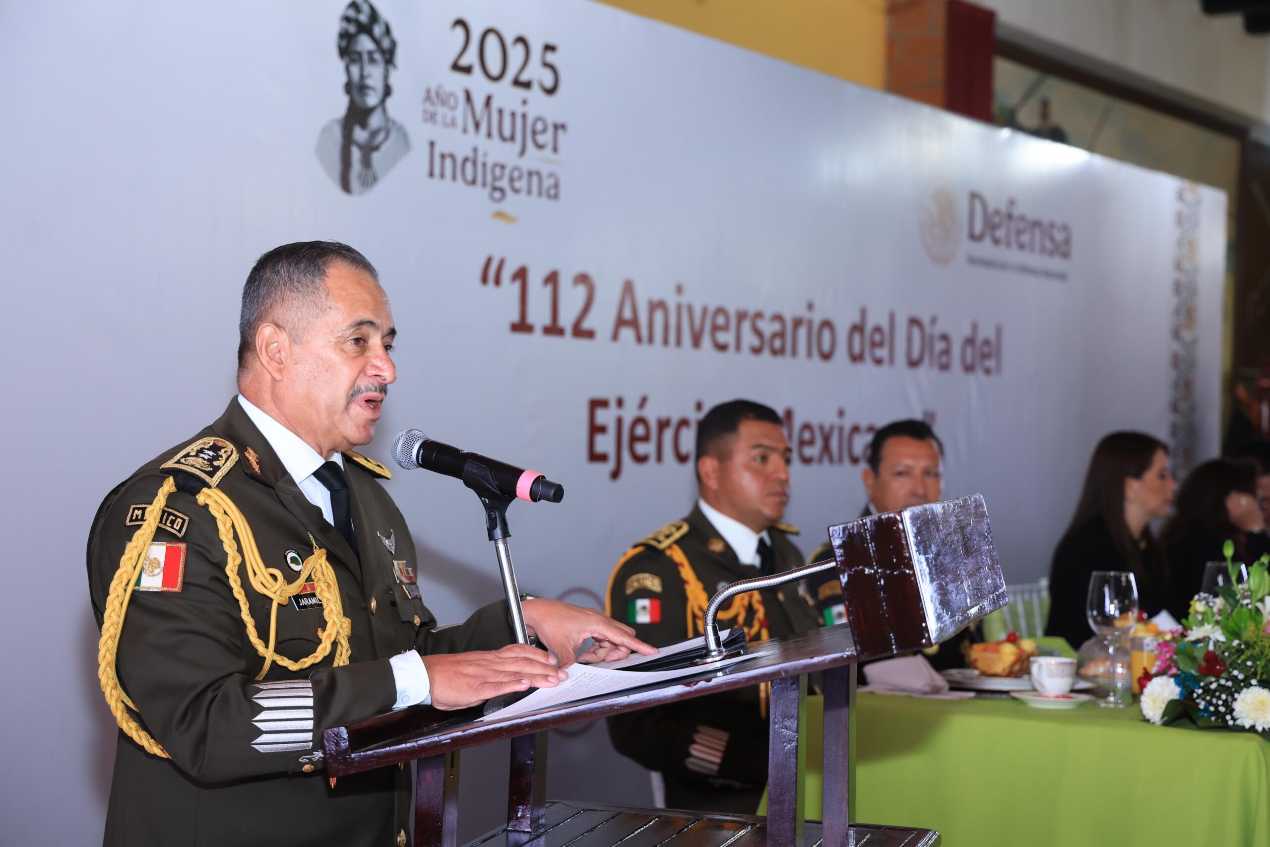 Sostuvo que el Ejército ha evolucionado a la par de las exigencias y retos que demanda la sociedad actual, consolidándose como una institución fundamental y pilar del Estado mexicano, fortaleciendo sus capacidades, actualizando su doctrina y su adiestramiento, basados en los principios ideológicos y valores humanitarios.