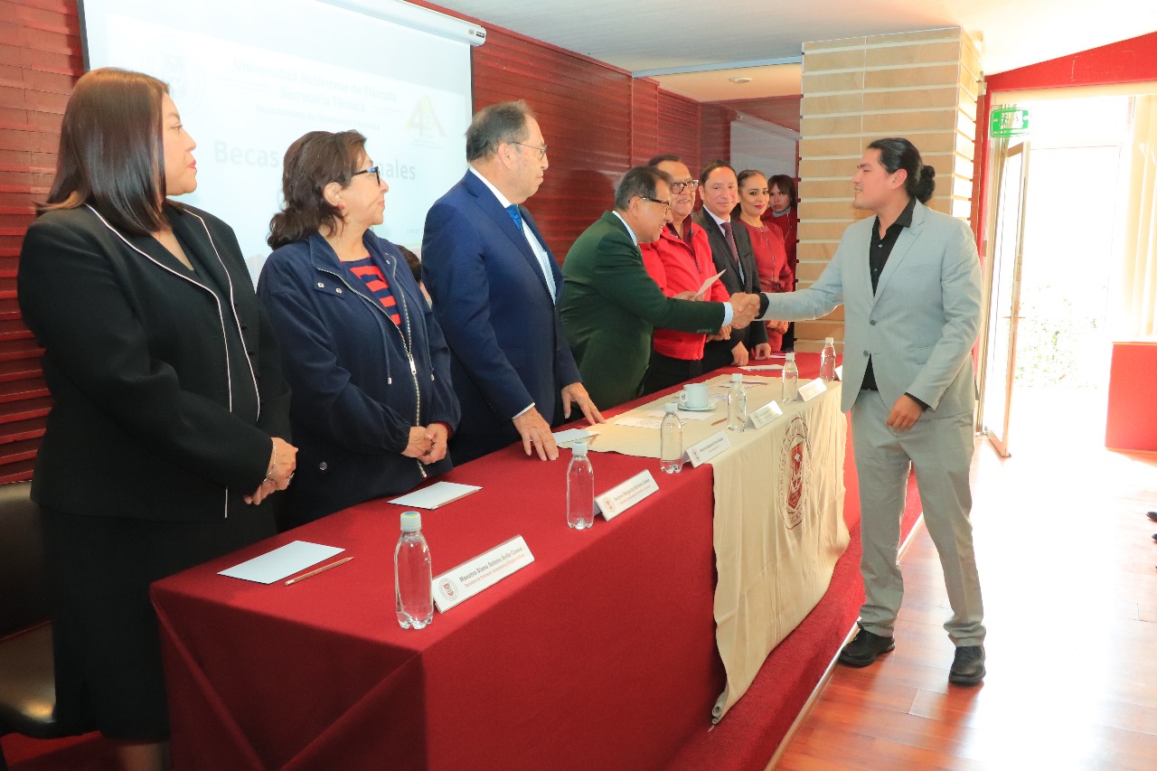 Reconoció el decidido impulso al Sistema Institucional de Becas durante esta gestión y la respectiva asignación presupuestal a pesar de los programas de gratuidad federal y la disminución de presupuestos asignados a esta alma mater.