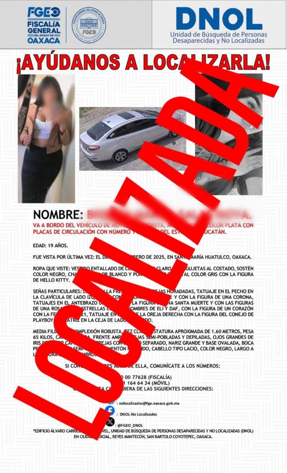 Gracias a la intervención oportuna y la inmediata activación de protocolos de búsqueda, fue posible dar con el paradero con vida de Brenda Mariel N., quien fue localizada en el Estado de Puebla.