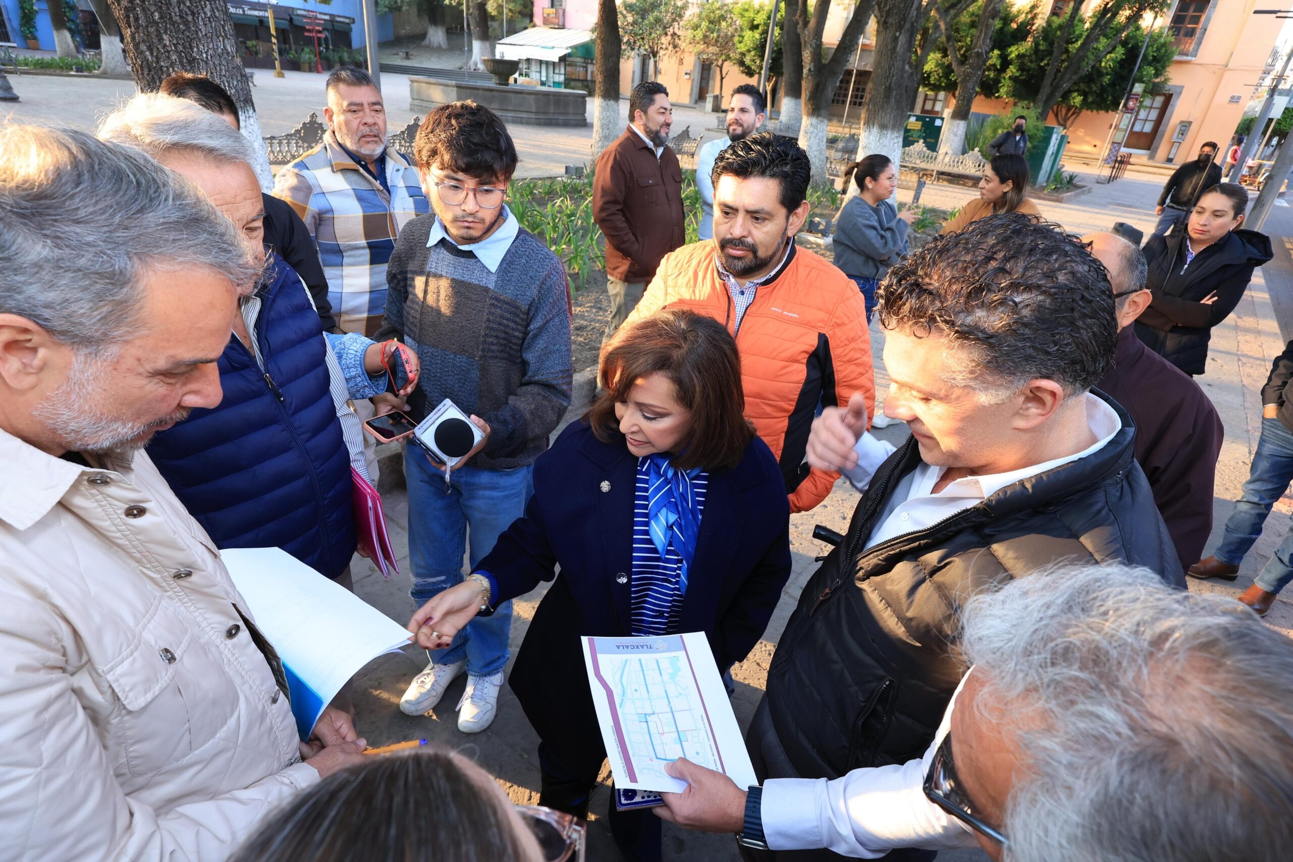 La comitiva de trabajo avanzó por las calles y avenidas Morelos y Pavón, Xicohténcatl, Lardizábal y Uribe, 20 de noviembre, Vicente Guerrero y Benito Juárez, así como la Plaza Xicohténcatl, donde concluyó el recorrido