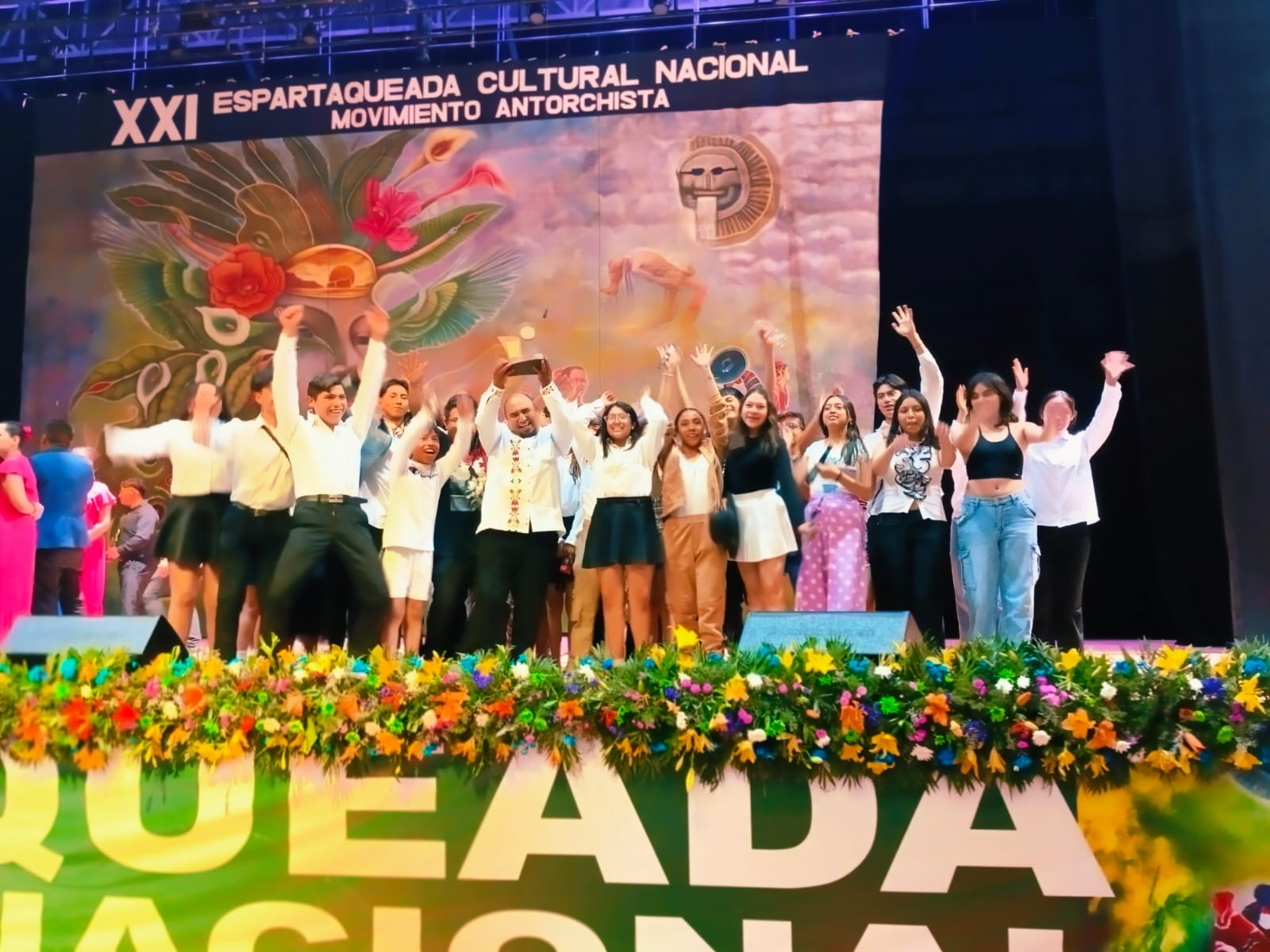 Tras la inauguración de la XXI Edición de la Espartaqueada Cultural Nacional 2025, ante más de cinco mil antorchistas de las 32 entidades que se dieron cita en la Plaza de Toros “La Antorcha” de Tecomatlán, Puebla.