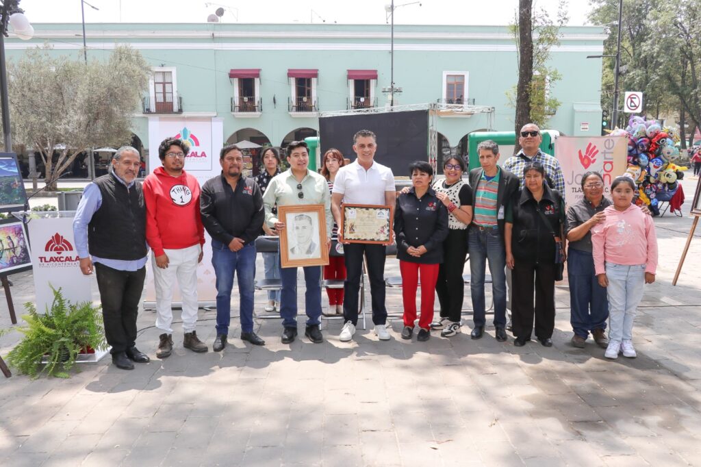 Integrantes de la Asociación Civil “Jardín del Arte” de Tlaxcala entregaron un reconocimiento al presidente municipal, Alfonso Sánchez García, por su apoyo a la comunidad artística local, al devolverles un espacio público para exponer su obra.