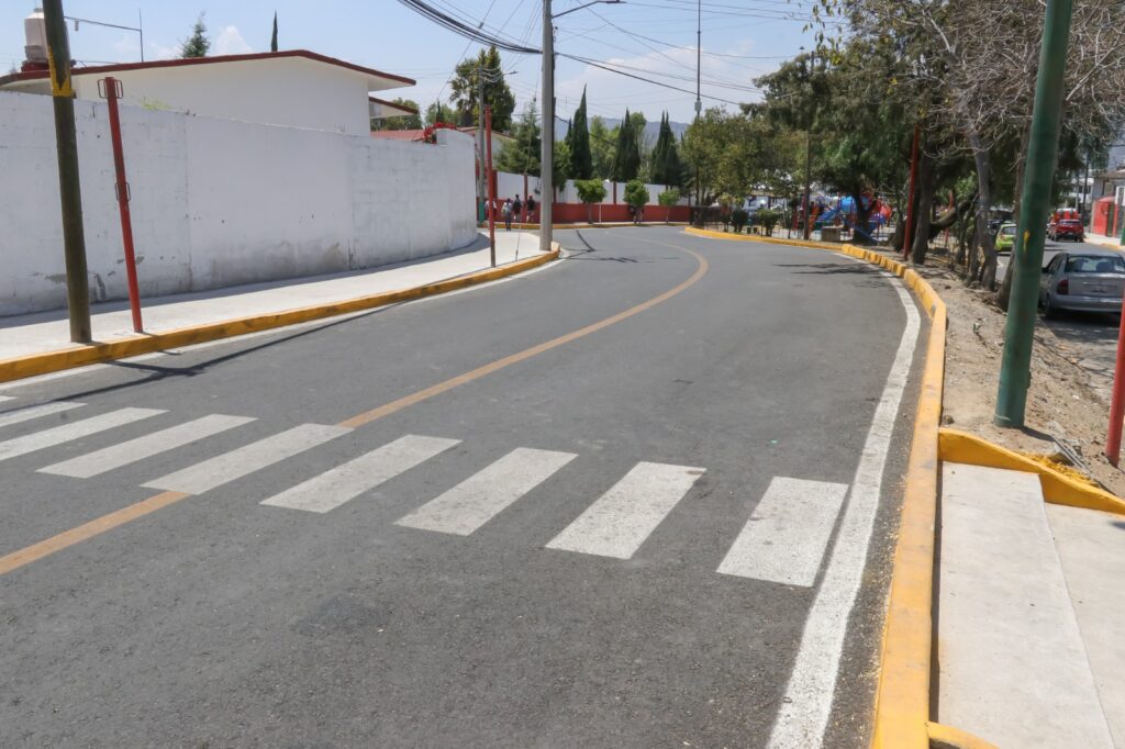 Los trabajos incluyeron la rehabilitación de 3 mil metros cuadrados de carpeta asfáltica, 807 metros lineales de guarniciones, mil 50 metros cuadrados de banquetas, señalamiento vial, pasos peatonales, topes y mejoras en áreas verdes, con la colocación de barandales y elementos de protección con adoquín.