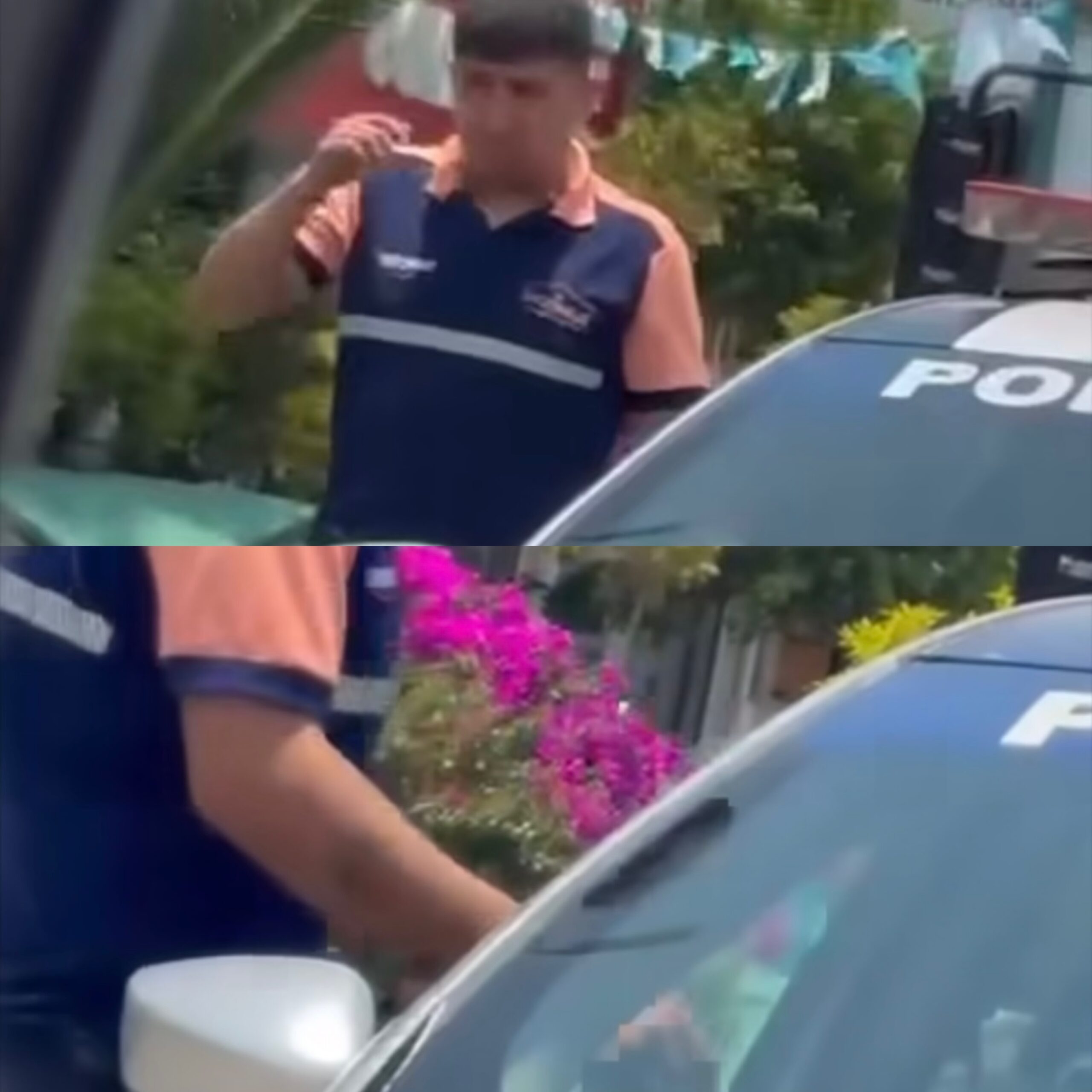 En el video se muestra cómo los oficiales abordo de una patrulla A-07 dialogan con un proveedor de la empresa “Danone” mismo que regresa a su unidad para segundos después dar lo que parece ser dinero y posteriormente retirarse los elementos.