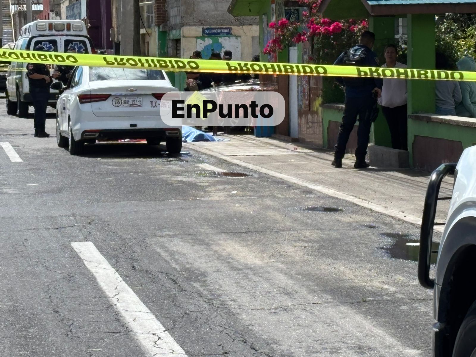 Elementos de seguridad abanderaron la zona en espera de la Fiscalía General de Justicia del Estado de Tlaxcala (FGJE) así como el Instituto de Servicios Periciales y Ciencias Forenses (INSIFO) quienes realizaron los protocolos que marca la ley.
