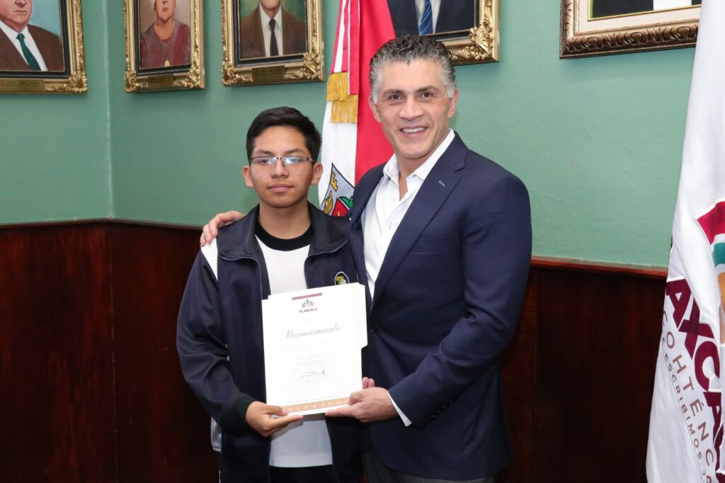 Como parte del compromiso del Ayuntamiento de Tlaxcala con la educación y el reconocimiento al esfuerzo estudiantil, el presidente municipal sostuvo un emotivo encuentro con alumnas y alumnos destacados de la Telesecundaria “Municipio de Tlaxcala”, ubicada en la comunidad de Atlahapa, a quienes entregó reconocimientos por su sobresaliente desempeño académico.