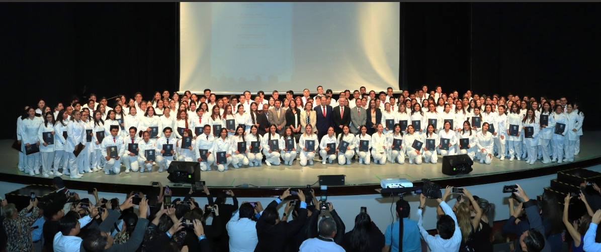 La Facultad de Ciencias de la Salud de la Universidad Autónoma de Tlaxcala (UATx) llevó a cabo la ceremonia de graduación de 180 estudiantes de la Licenciatura en Médico Cirujano, generación 2021-2026, quienes proclamaron el Juramento Ético Médico, el cual representa el punto de partida del compromiso que asumen en el ejercicio de su profesión para trabajar por el bienestar y la salud de la humanidad.