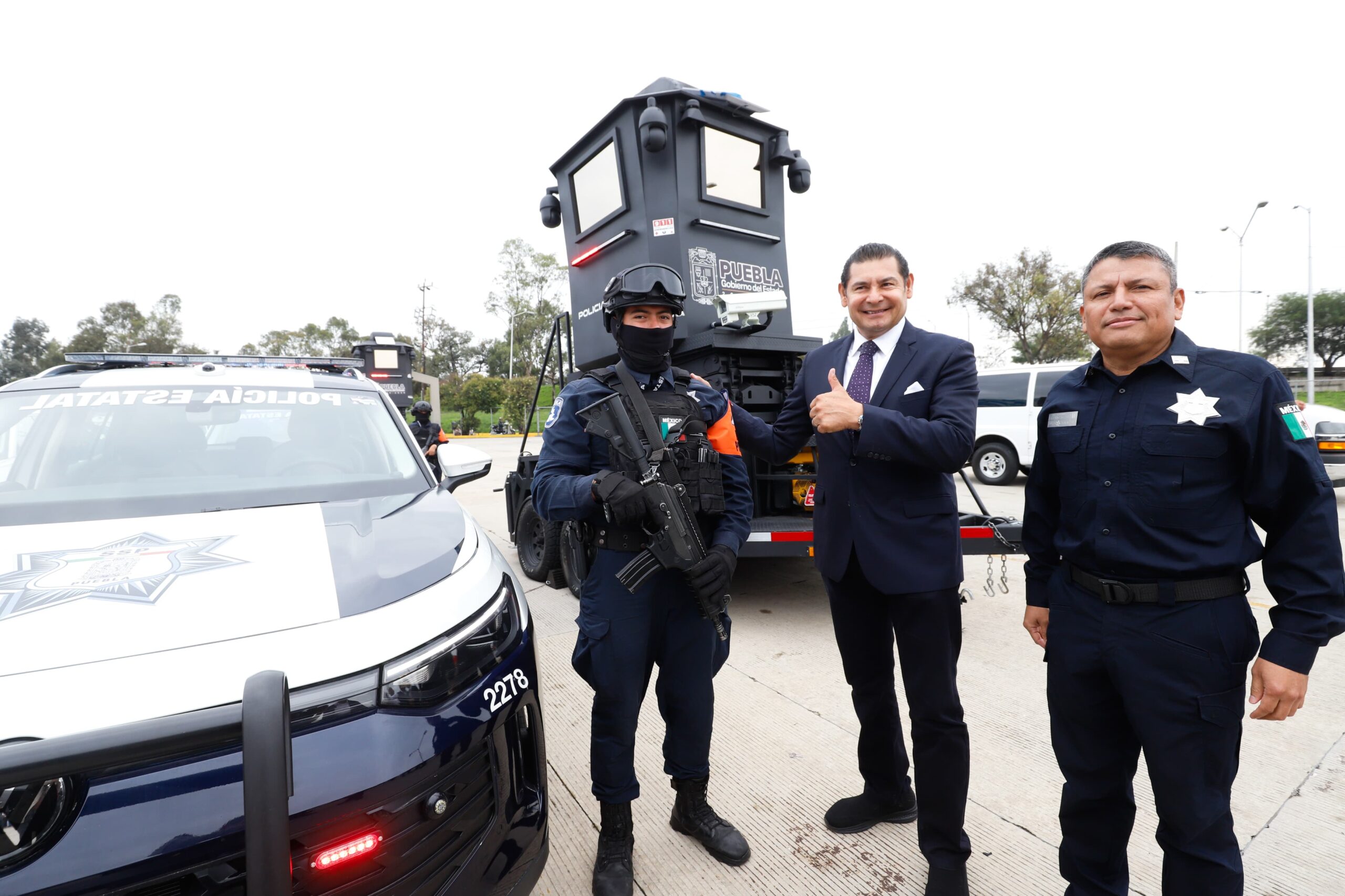 El secretario de Seguridad Pública, Vicealmirante Francisco Sánchez González, detalló que hoy se da un paso contundente hacia el fortalecimiento de la seguridad, y a la misión de proteger a Puebla, afirmó que el equipamiento otorgado se suma a las 50 radiopatrullas y tres torres móviles otorgadas por el gobernador durante su segundo día de mandato, con ello queda asentado que la seguridad de las familias es una prioridad.