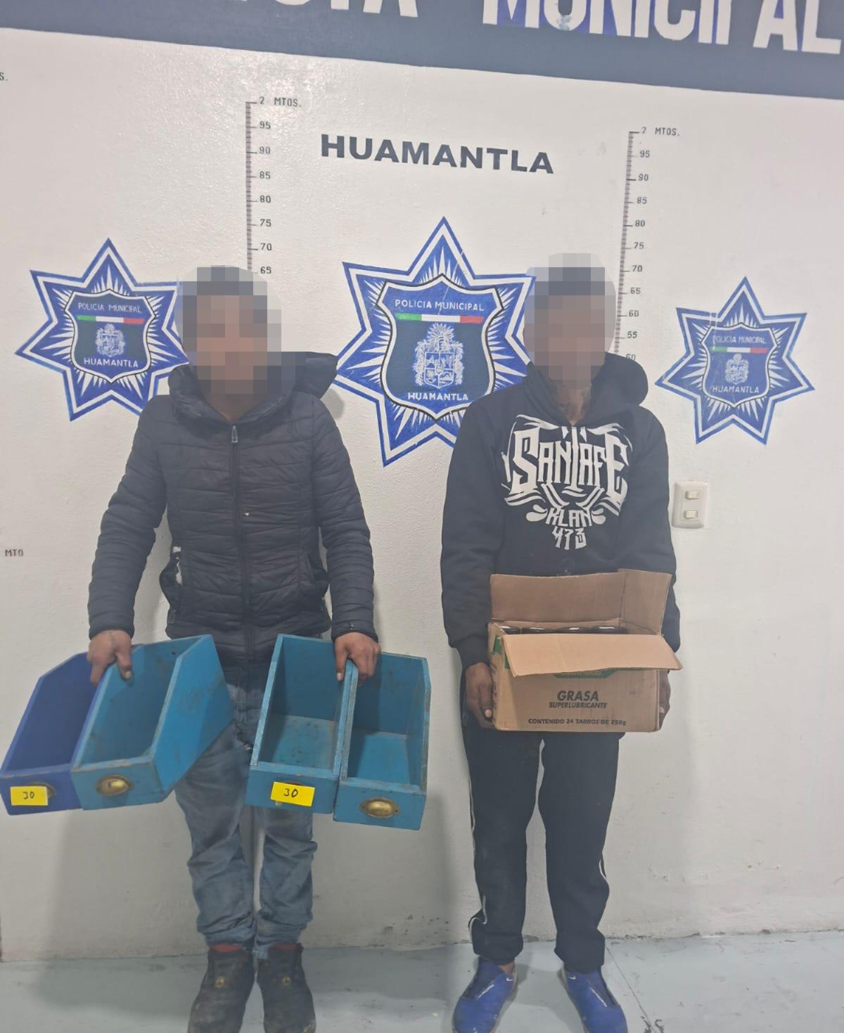Al arribar al lugar, los oficiales detectaron a dos masculinos que, al notar la presencia policial, intentaron huir del lugar, sin embargo, lograron ser detenidos por policía municipal en posesión de una caja de cartón con la leyenda “grasa super lubricante” y cuatro cajones de madera color azul.