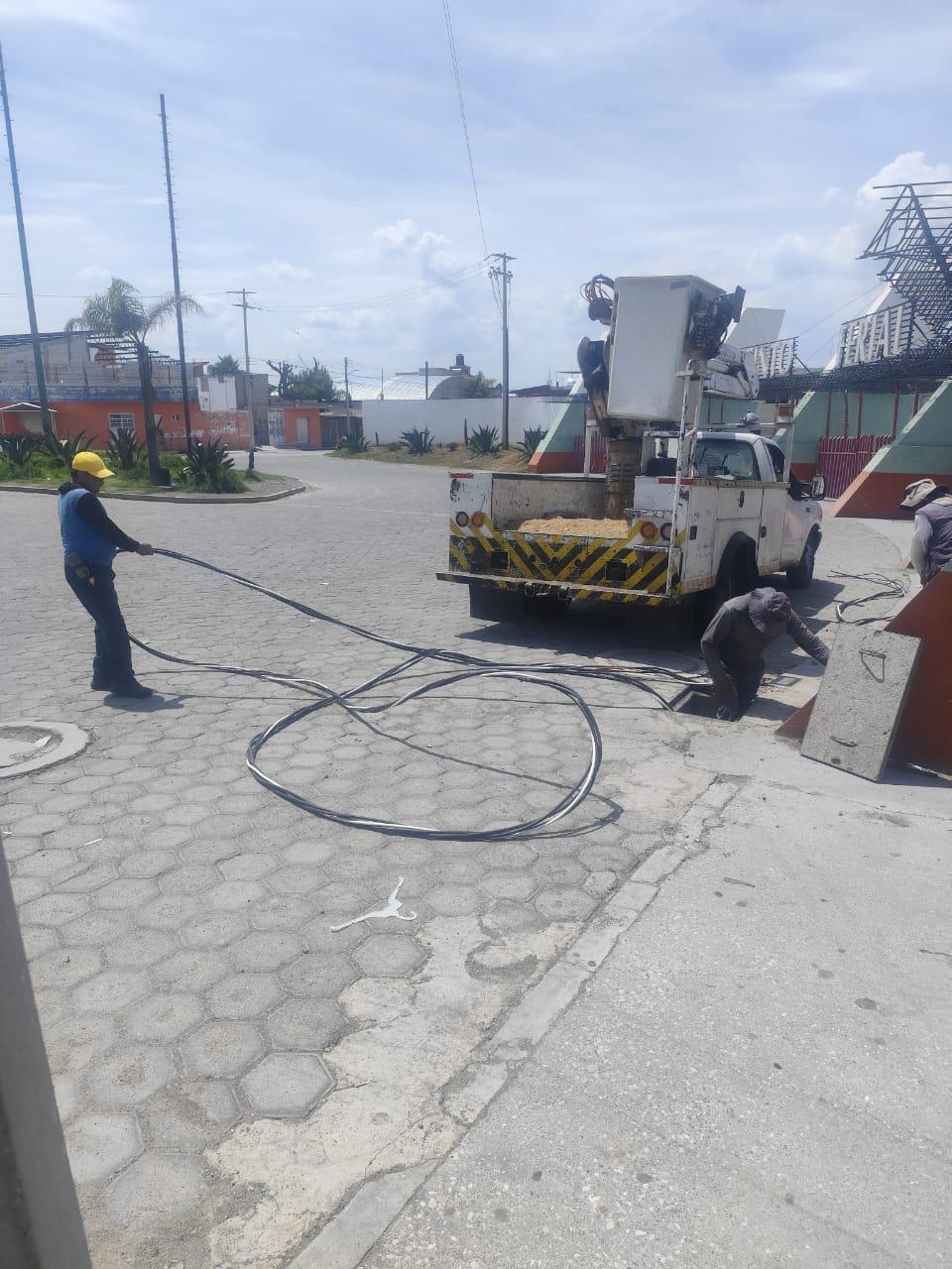 Con el objetivo de garantizar que todas las instalaciones del recinto ferial estén en condiciones óptimas, el Gobierno Municipal de Huamantla, a través del área de Servicios Públicos Municipales, realiza trabajos de preparación e instalación eléctrica en las distintas zonas donde se desarrollarán actividades de la Feria Internacional del Arte Efímero y la Dalia 2025.