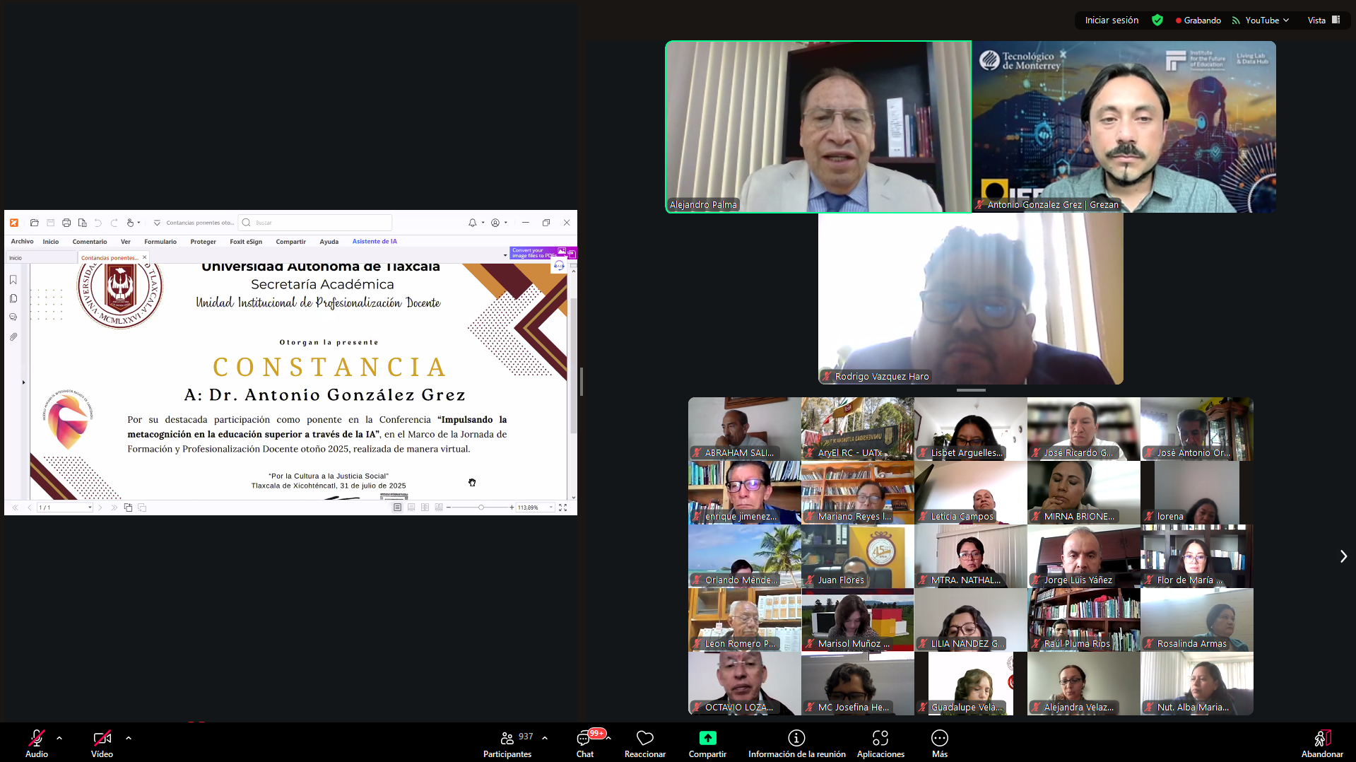 Para dotar de herramientas pedagógicas a los docentes que imparten cátedra en los diferentes programas educativos de la Universidad Autónoma de Tlaxcala (UATx), la Unidad Institucional de Profesionalización Docente de la Secretaría Académica inició la “Jornada de Formación y Profesionalización Docente Otoño 2025”, con la ponencia “Impulsando la metacognición en la educación superior a través de la IA” que impartió el Doctor Antonio González Grez, Académico-Investigador y Coordinador en el IFE Living Lab del Instituto para el Futuro de la Educación del Instituto Tecnológico de Monterrey.