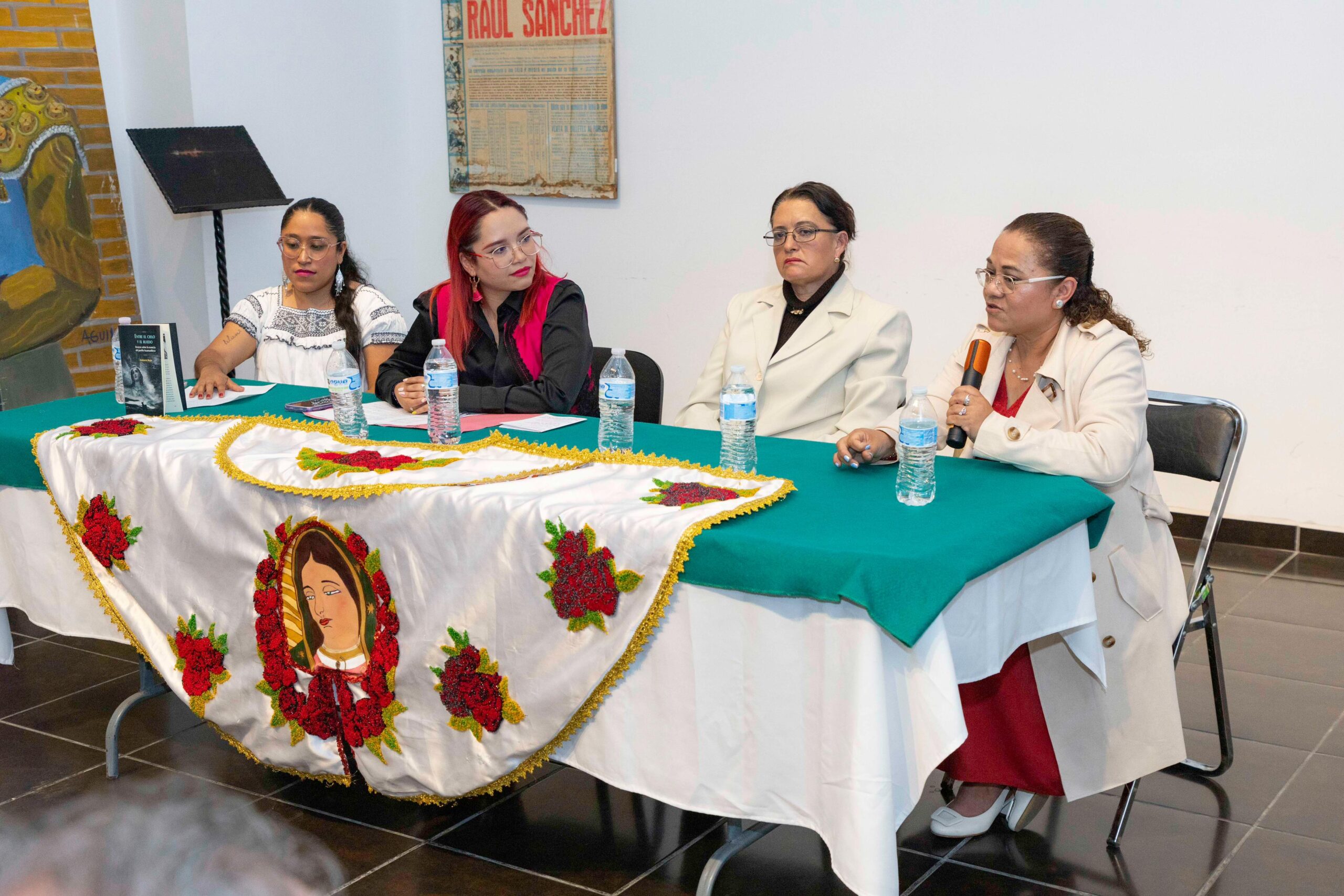 En el panel participaron la MVZ Margarita Vieyra; la Doctora en Filosofía Anakarent Monserrat Rojas; la Maestra Monserrat Zepeda Aquino; la Socióloga Rosario Peña Vieyra; y la Pintora Jessica Morales Barrera, quienes compartieron sus experiencias y perspectivas sobre la presencia femenina en distintos ámbitos relacionados con la tauromaquia.