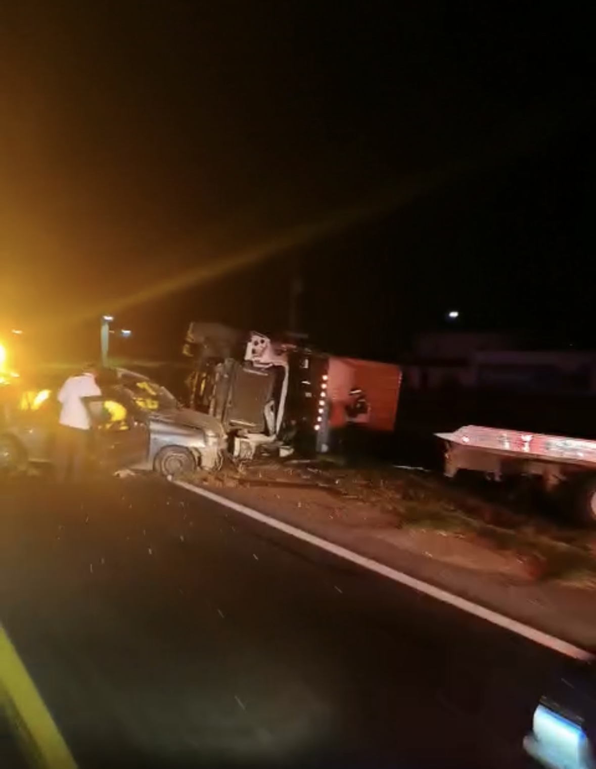 A pesar de que no se conoce la cronología de los hechos de manera precisa, la unidad pesada quedó volcada, mientras que el vehículo compacto prácticamente deshecho.