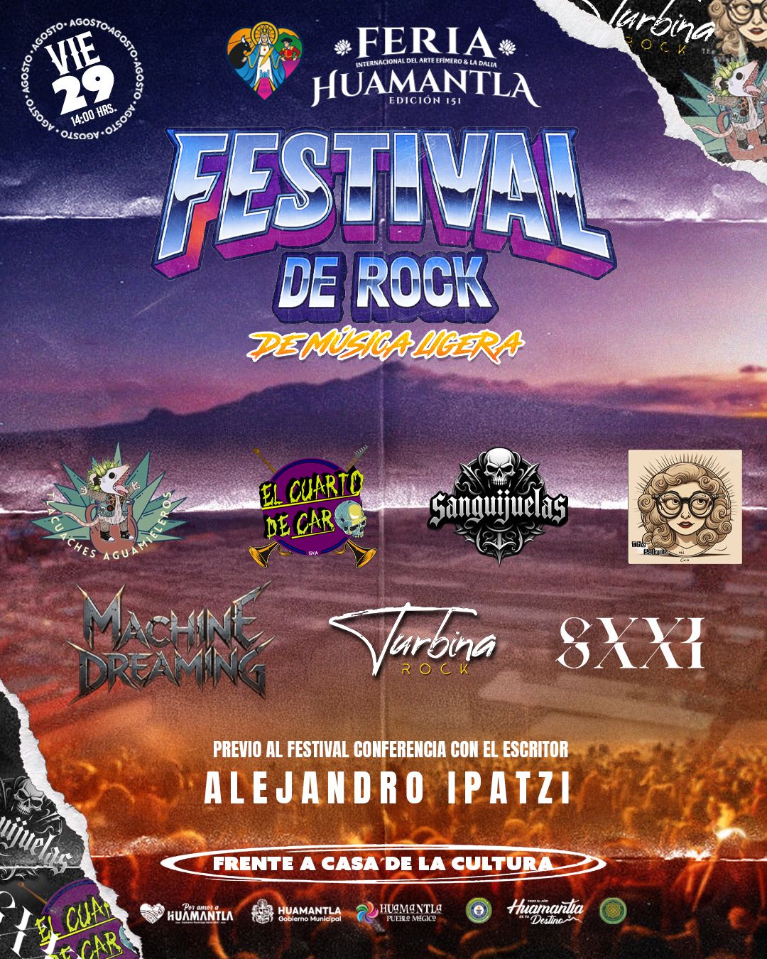 Huamantla, Tlaxcala, – La Feria Internacional del Arte Efímero y la Dalia 2025 continúa ofreciendo eventos para todos los gustos, y este viernes 29 de agosto se vivirá una tarde especial con la realización del Festival de Rock “De Música Ligera”, en el Parque Juárez, frente a la Casa de la Cultura.