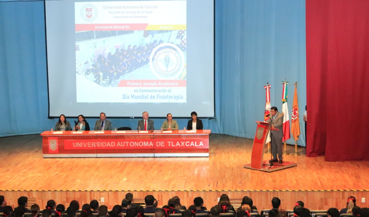 Ante los 361 estudiantes de la Licenciatura en Fisioterapia reunidos en el Teatro Universitario, el Maestro José Reyes Luna Ruíz, Coordinador de la División en Ciencias Biológicas, en representación del Doctor Serafín Ortiz Ortiz, Rector de la UATx, precisó que este encuentro académico formativo busca resaltar el papel fundamental del fisioterapeuta, para promover la rehabilitación y mejorar la calidad de vida de las personas en los sistemas de salud y fomentar la actualización continua a fin de generar la reflexión crítica y el intercambio de saberes entre estudiantes y docentes.