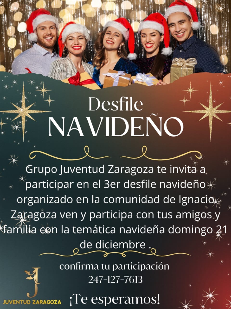 Con el objetivo de continuar realizando actividades que pongan el nombre de la comunidad de Ignacio Zaragoza en alto y a la vez diminuir malos comentarios y que jóvenes puedan integrarse a realizar distintas actividades, el Grupo Juvenil, invita a participar en el tradicional desfile navideño.